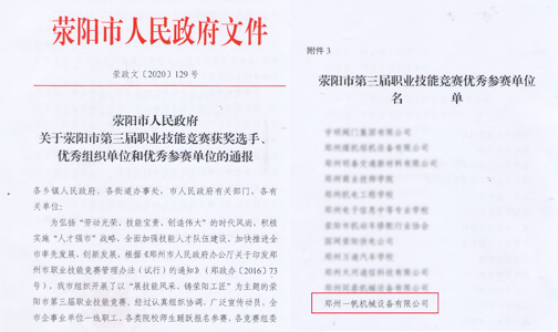 5、2021年2月,榮獲“滎陽(yáng)市第三屆職業(yè)技能競(jìng)賽優(yōu)秀參與單位”。