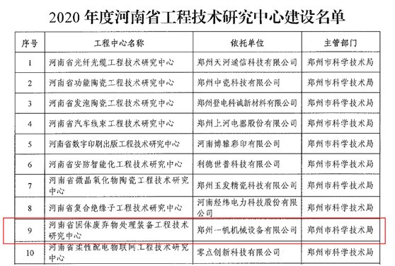 13、被認(rèn)定為河南省固體廢棄物處理裝備工程技術(shù)研究中心。